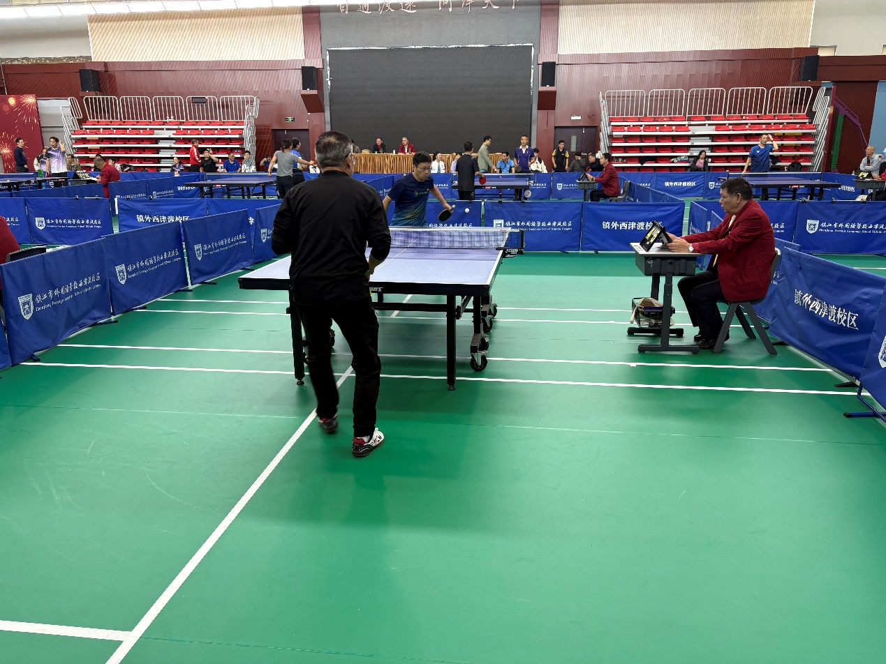 10月19日,由镇江市教育局、镇江市教育工会主办的2025年镇江市区教职工乒乓球团体比赛在镇江市第六中学体育馆举办,比赛分为普教组和高校组。根据要求,每支代表队由5名运动员组成,其中至少含有一名现任校领导(含工会主席)、一名女队员、一名40岁以下的男子青年组运动员、一名40岁以上的男子中年组运动员。我校高度重视此次比赛,校工会和乒乓球协会认真组织,精心选拔参赛队员。经过两个多小时的比赛,我校代表队荣获本次团体比赛亚军。