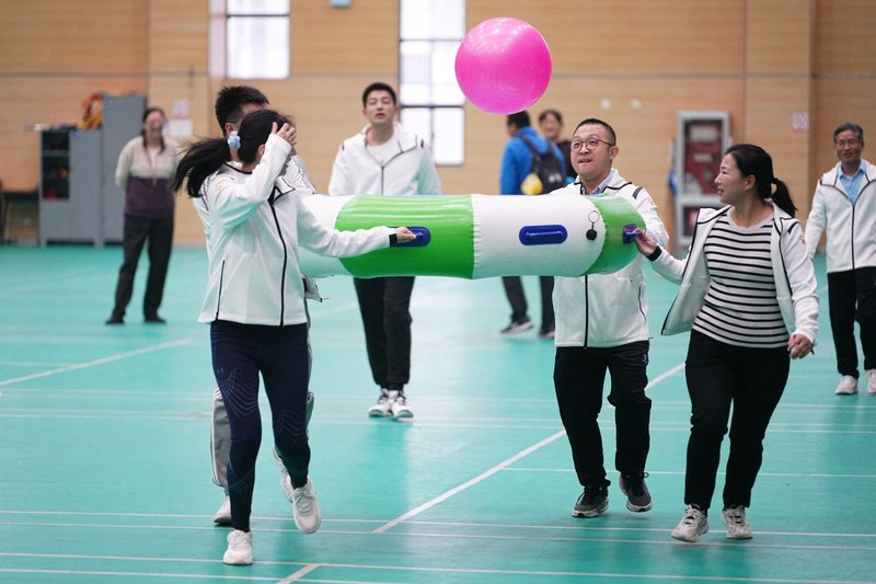 展演落幕,趣味运动会接续点燃全场激情。毛毛虫竞速、争先恐后、集体跳大绳、凝心聚力等项目轮番登场,各参赛队伍默契配合、奋勇争先。赛场上,平日里躬耕教坛、勤勉敬业的教职工们化身运动健将,在“毛毛虫”上协调步伐,在气球运送中默契配合,在长绳翻飞间鱼贯而入,在同心鼓上颠球前行。现场欢笑声、加油声、喝彩声此起彼伏,充满了轻松愉快的氛围。大家在挥洒汗水中释放活力,在默契配合中凝聚力量,充分展现了江科大教职工的多面风采。