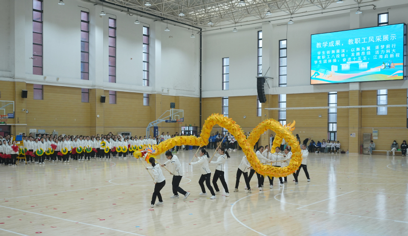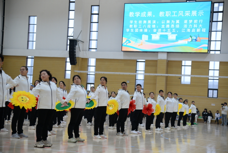11月7日上午,江苏科技大学长山校区文体中心篮球馆内活力涌动,第四十五届校运会开幕式教职工全民健身项目展演及趣味运动会圆满举办。全校教职工以饱满热情投身这场体育盛会,用运动激情诠释团结力量,彰显了学校“快乐工作·健康生活”的全民健身风尚。