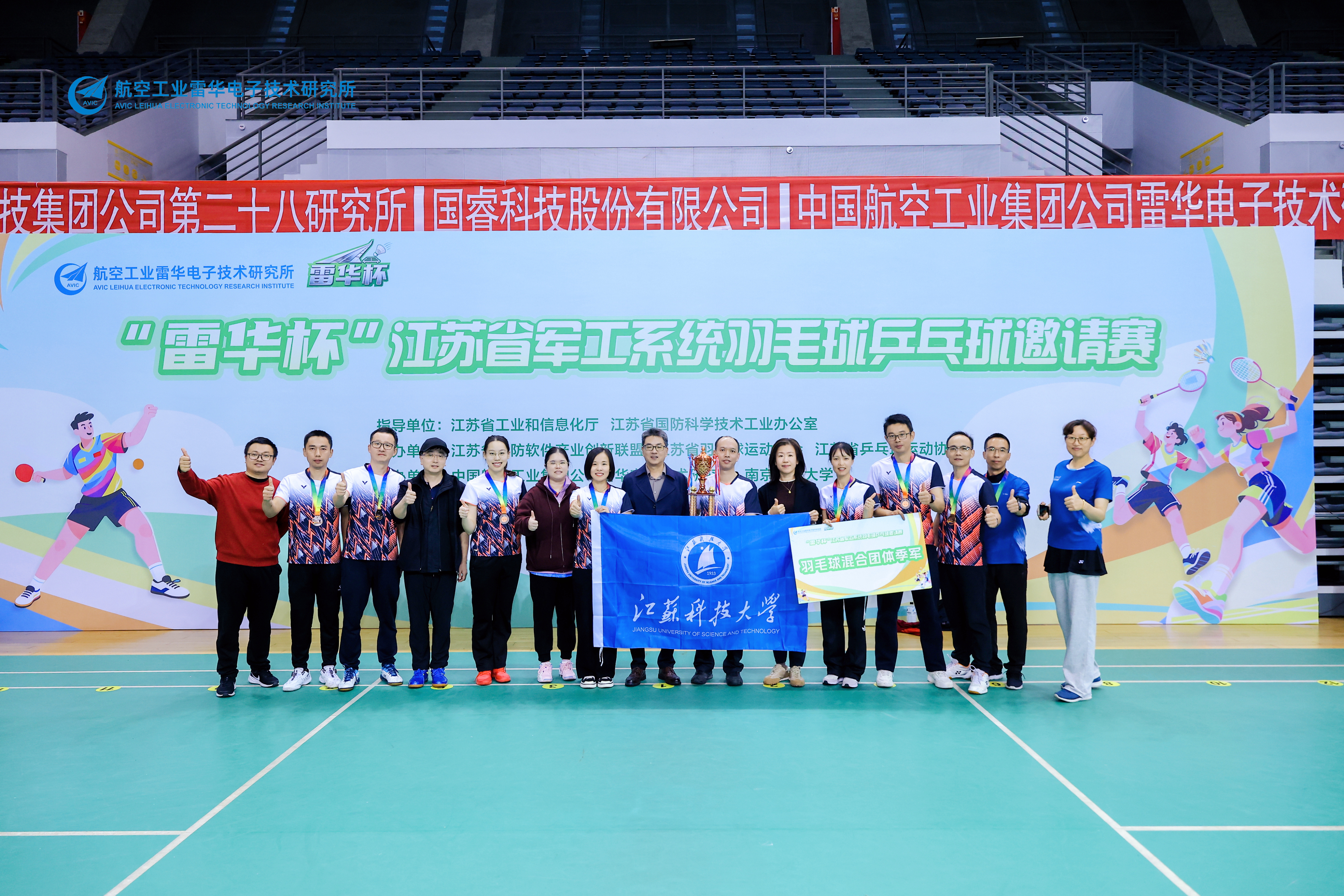 11月15日-16日,在“雷华杯”江苏省军工系统羽毛球乒乓球邀请赛中,我校羽毛球队、乒乓球队团结协作、奋勇拼搏,最终斩获羽毛球混合团体季军、乒乓球混合团体第四名的好成绩,充分展现了新时代高校教职工昂扬向上的精神风貌和卓越的体育竞技水平。校党委常委、副校长叶永林亲临现场为参赛队员加油鼓劲。